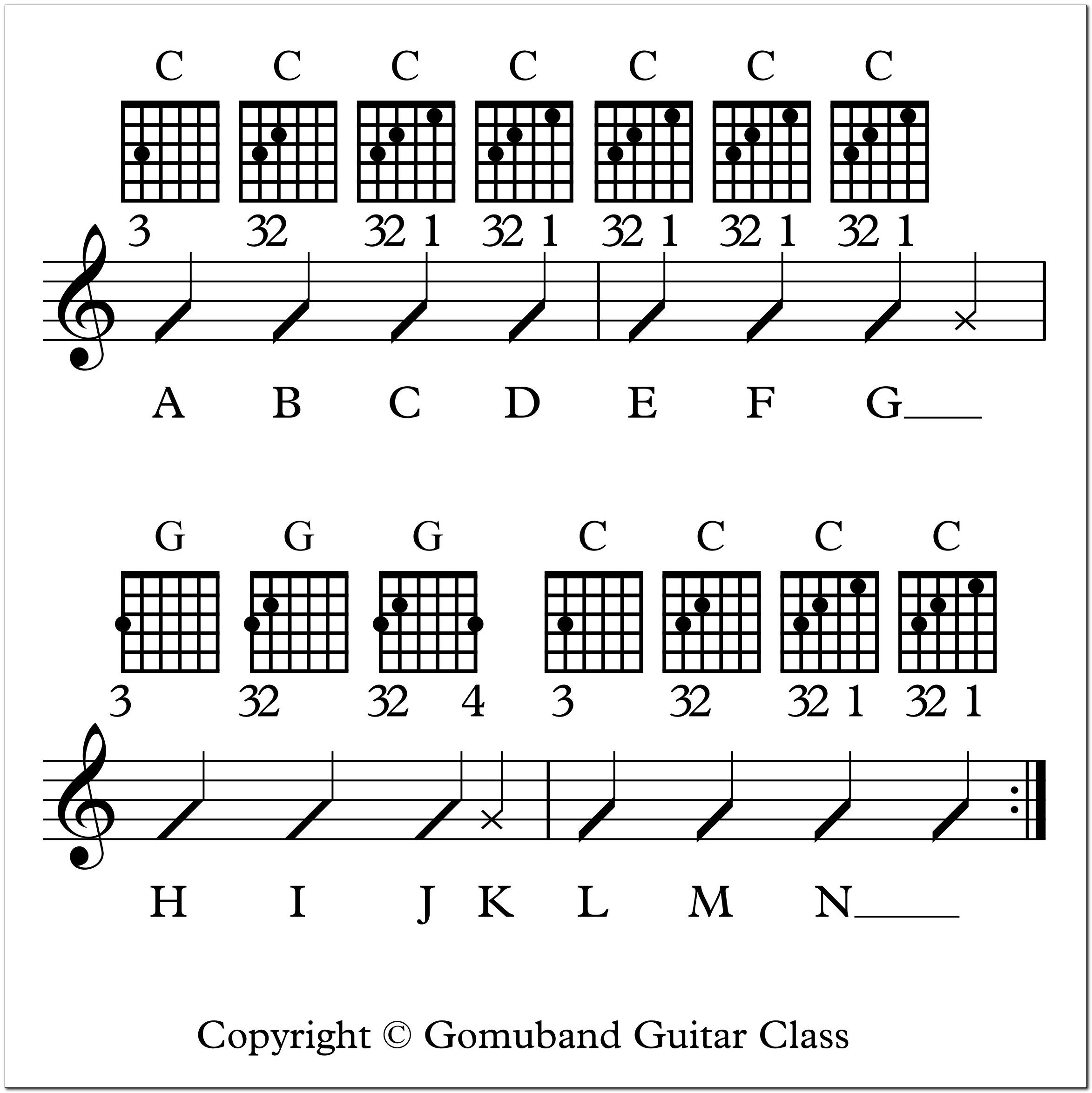 자! 이제 천천히 'ABC 노래'를 하면서 코드를 잡아봅시다.
