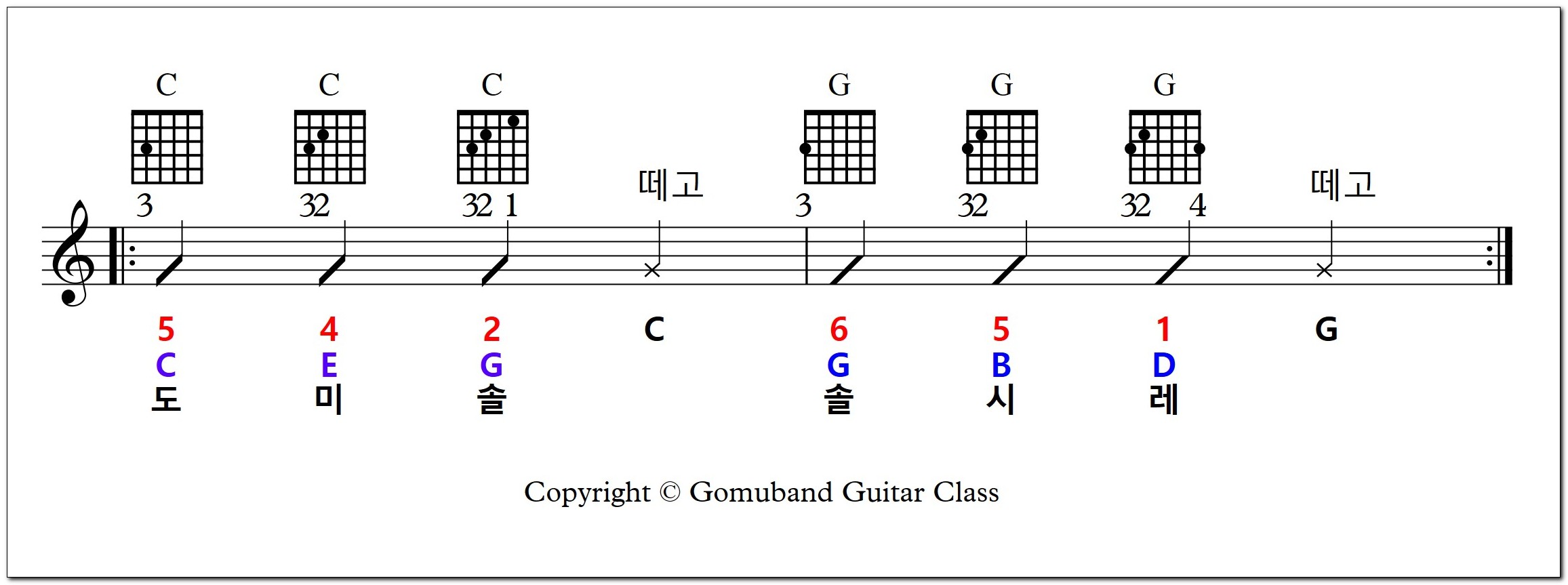 오늘은 기타의 G 코드를 연습하는 날입니다.