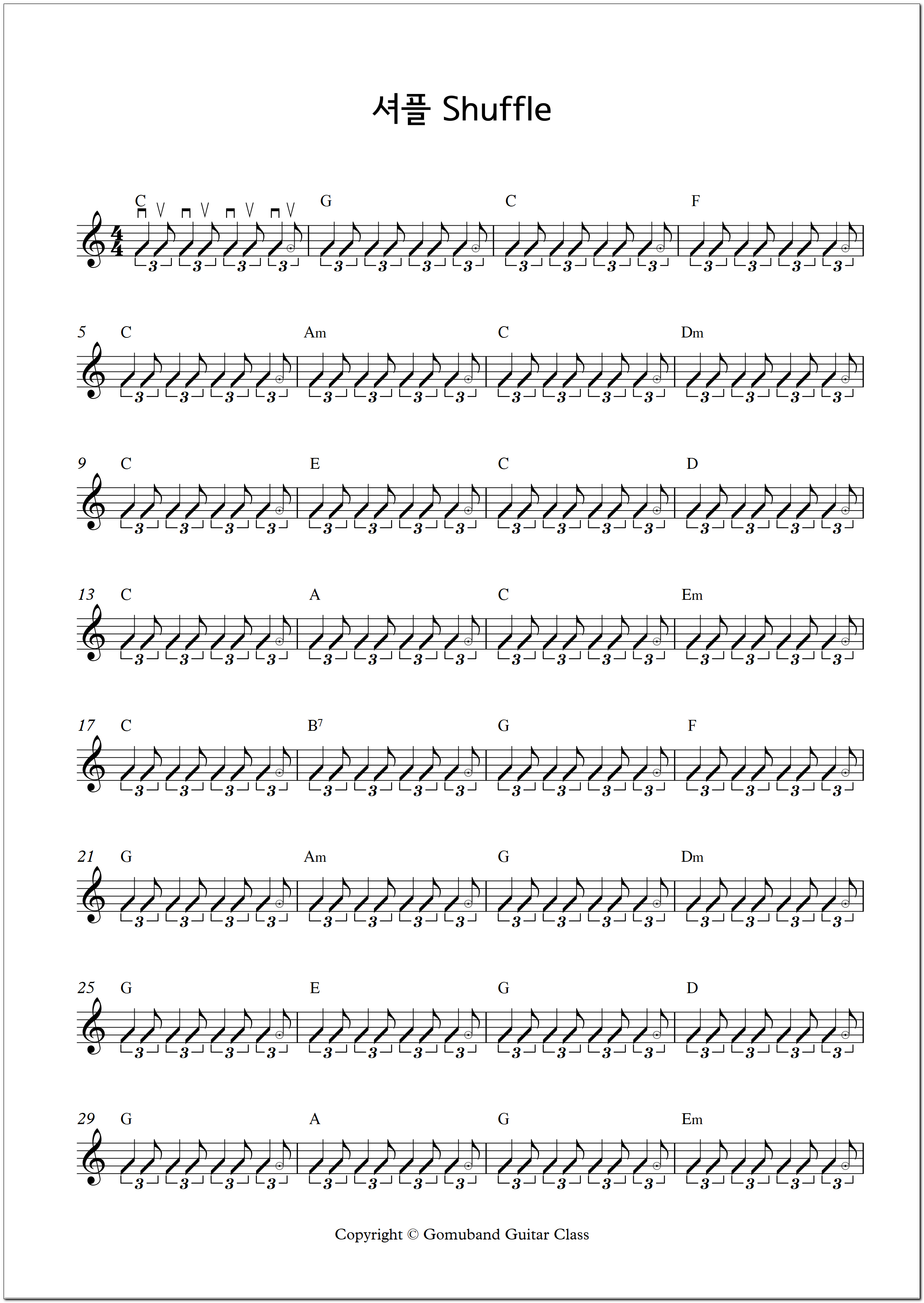 더 주의해야 할 것은, 첫 마디 위에 셔플 표시나 리듬 표시가 없는 곡이 많다는 겁니다.