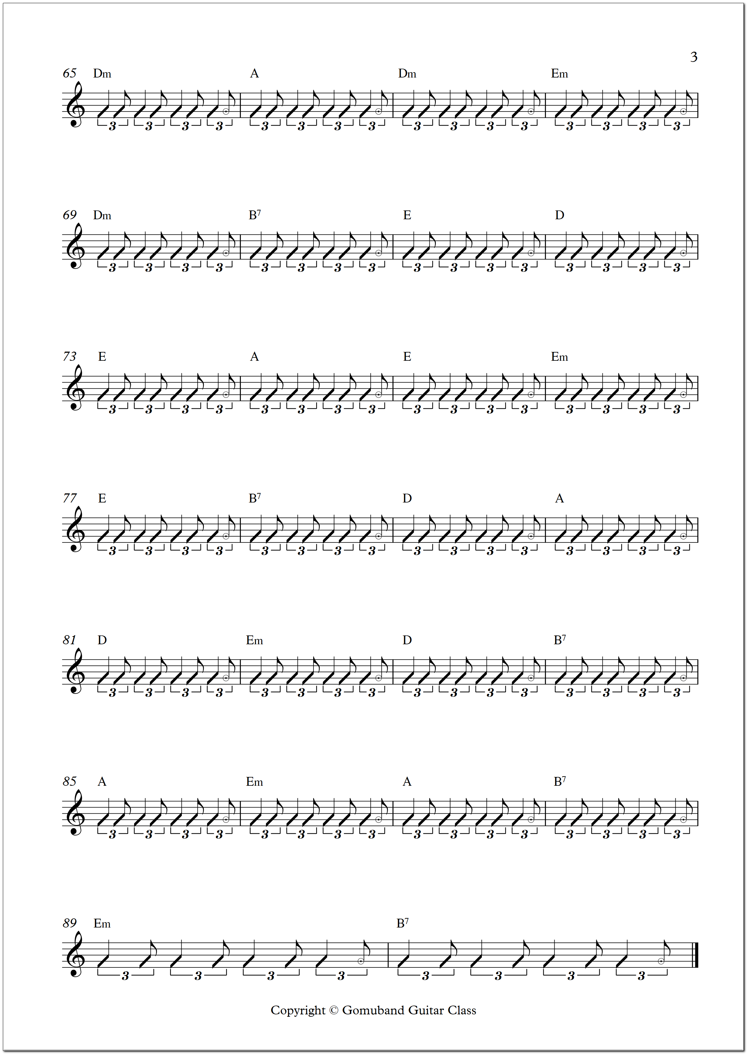 다음 시간에는 느린 8비트 스트레이트 리듬(슬로우 고고)과 16비트의 개념을 배우겠습니다.