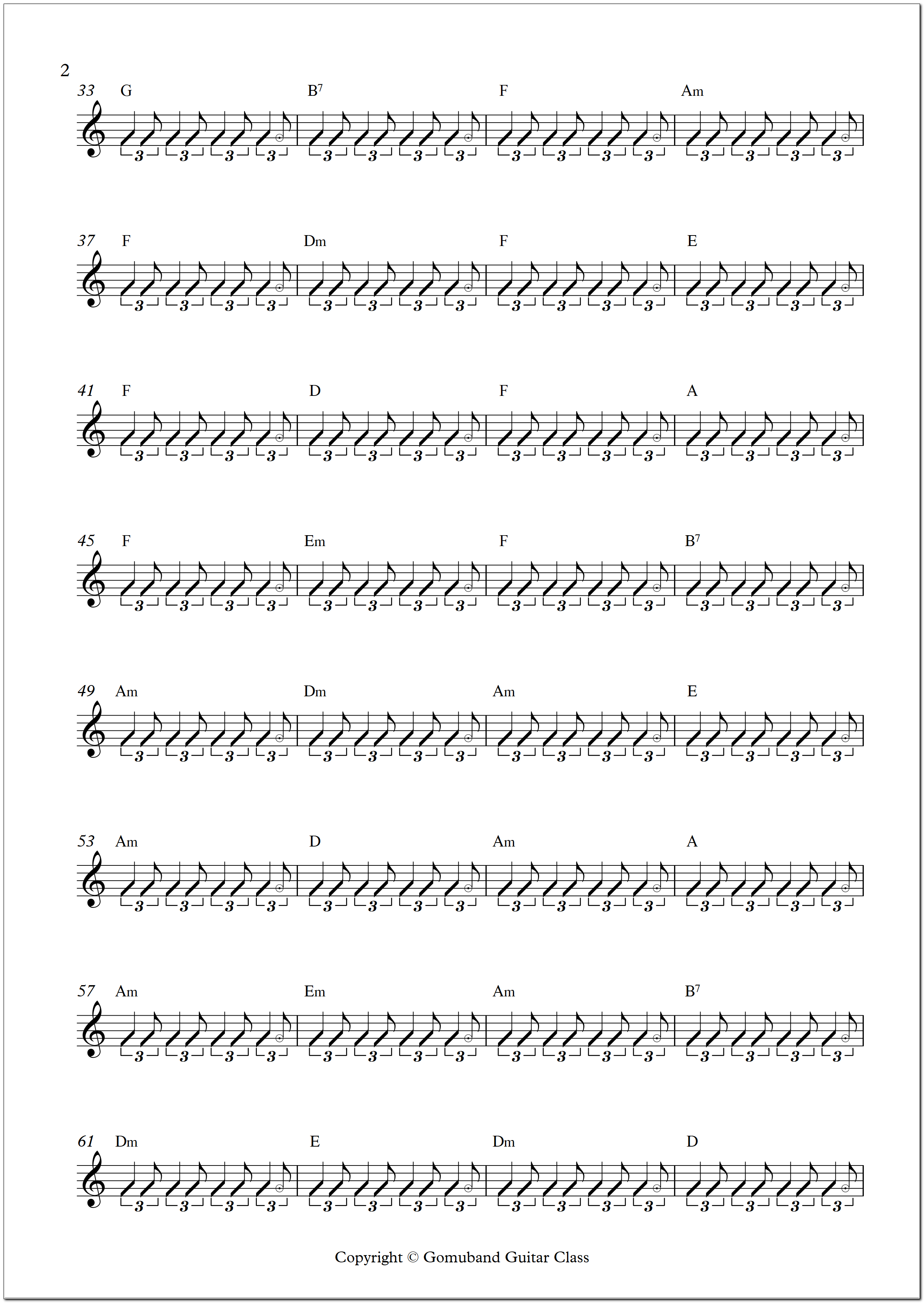 코드가 두 개면 두 박자와 네 박자째의 2/3비트에서(5번 마디),