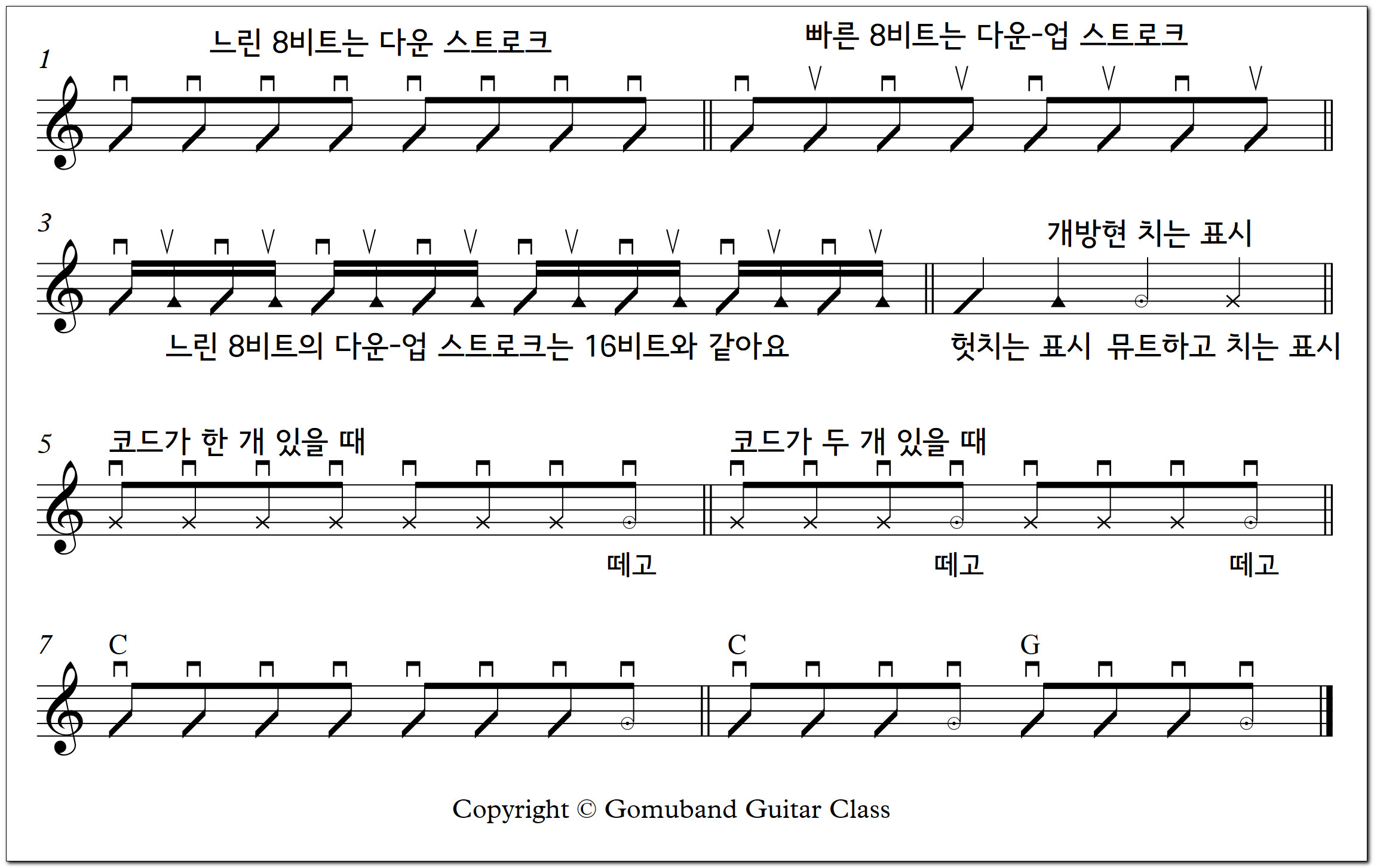 [고무밴드 기타교실] 42. 기타 기본 리듬 8비트 1 Guitar Basic Rhythm 8-Beat 1