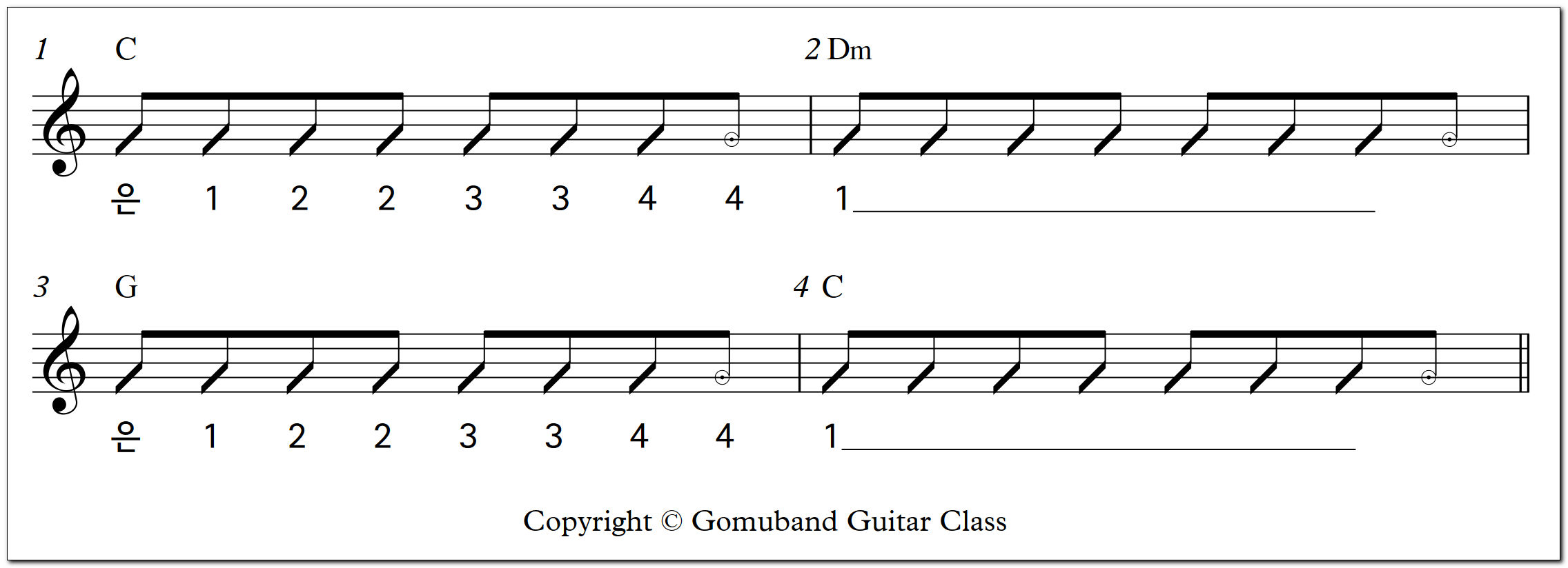 ● 아래 악보는 느린 8비트 코드 바꾸기 연습입니다.