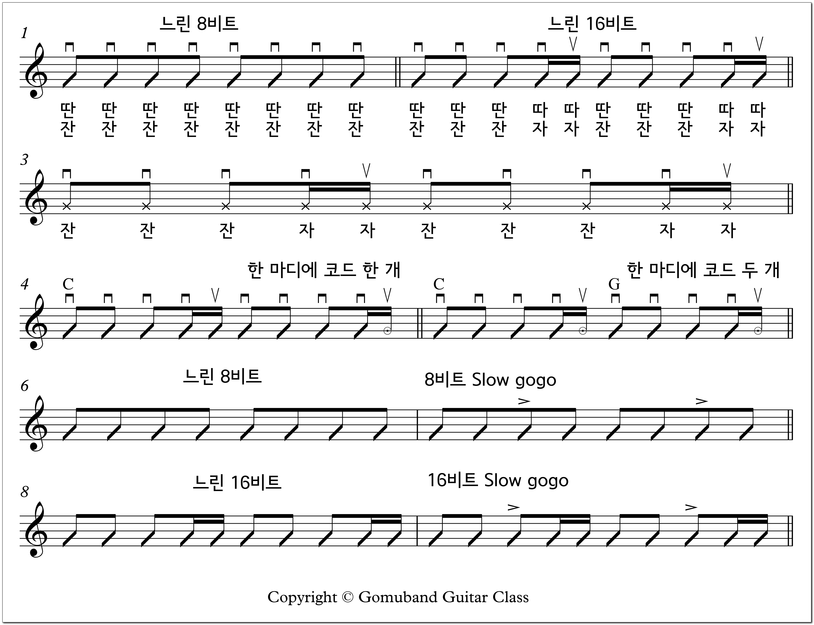 | 47. 느린 8비트 스트레이트 리듬(슬로우 고고)과 16비트의 개념 slow 8-bit straight rhythm and 16-bit concept [고무밴드 기타교실] (28) | 2020.10.07 |