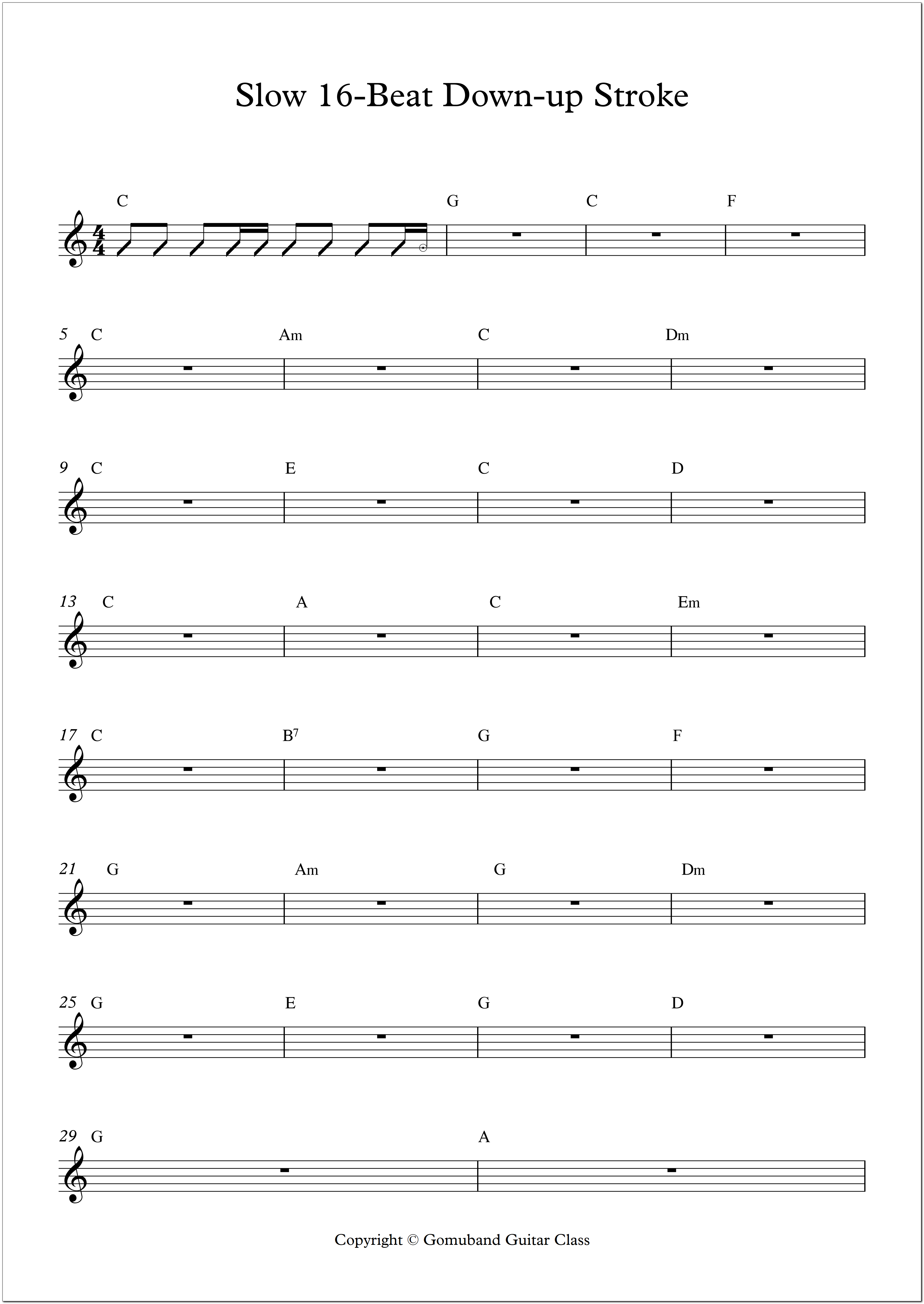 ● 아래 악보는 느린 16비트 코드 바꾸기 연습입니다.